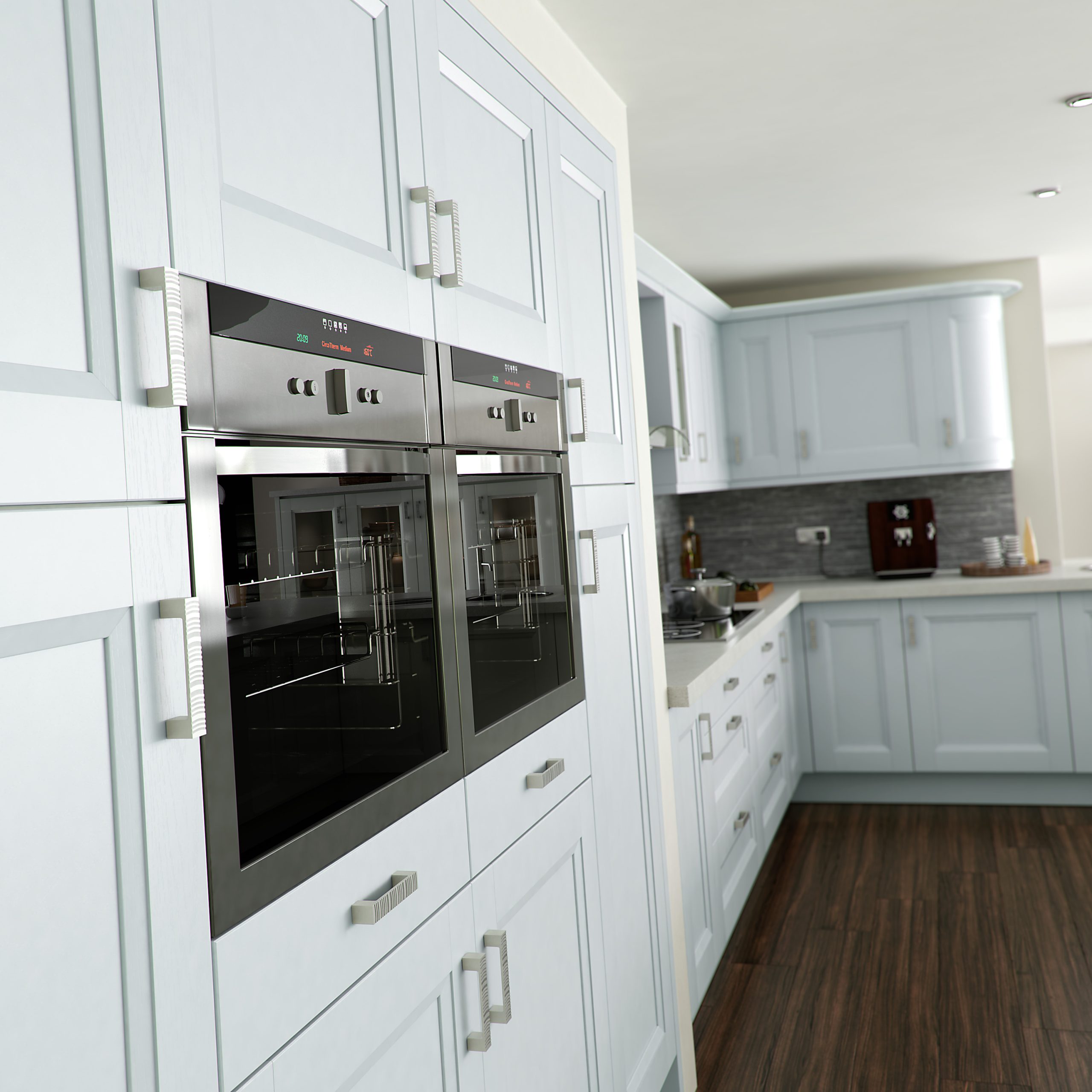 A stylish painted Shaker-style kitchen with solid ash frames and soft chamfered edges.