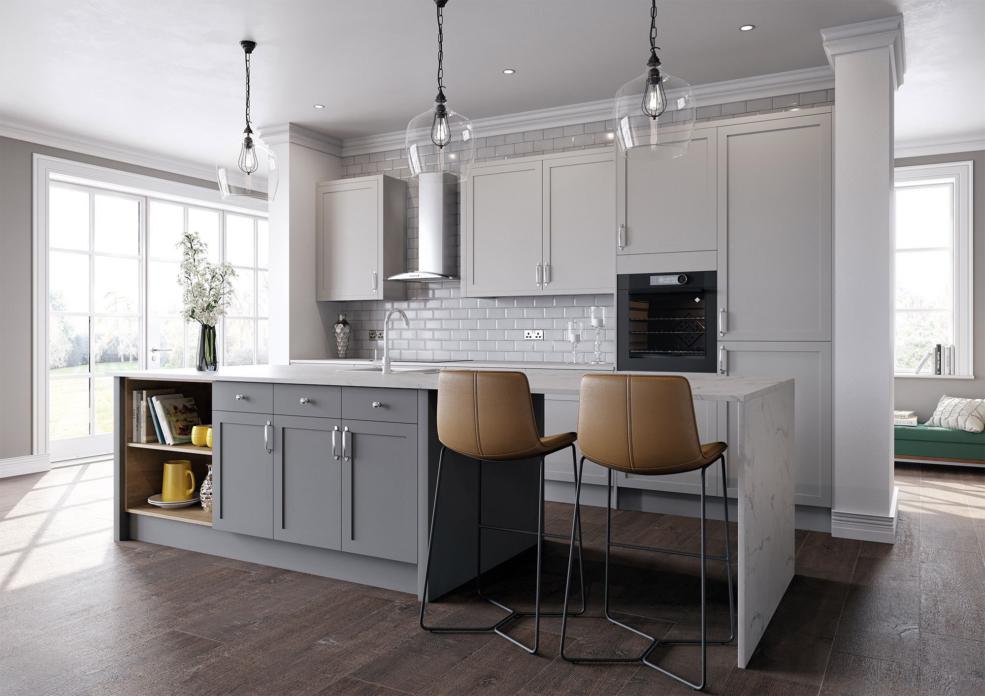 Ascot, featuring an ultra-slim frame, stands out as our most contemporary shaker kitchen range. Easy to care for durable too, due to the easy-to-clean shallow centre panel and painted finish.
