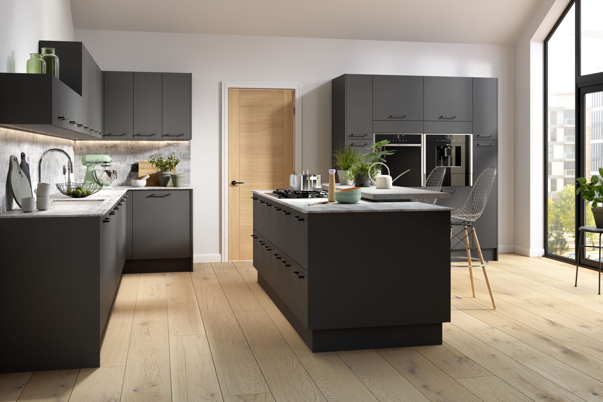 COLOURS – Contemporary door style is available in a selection woodgrain & matt finishes.