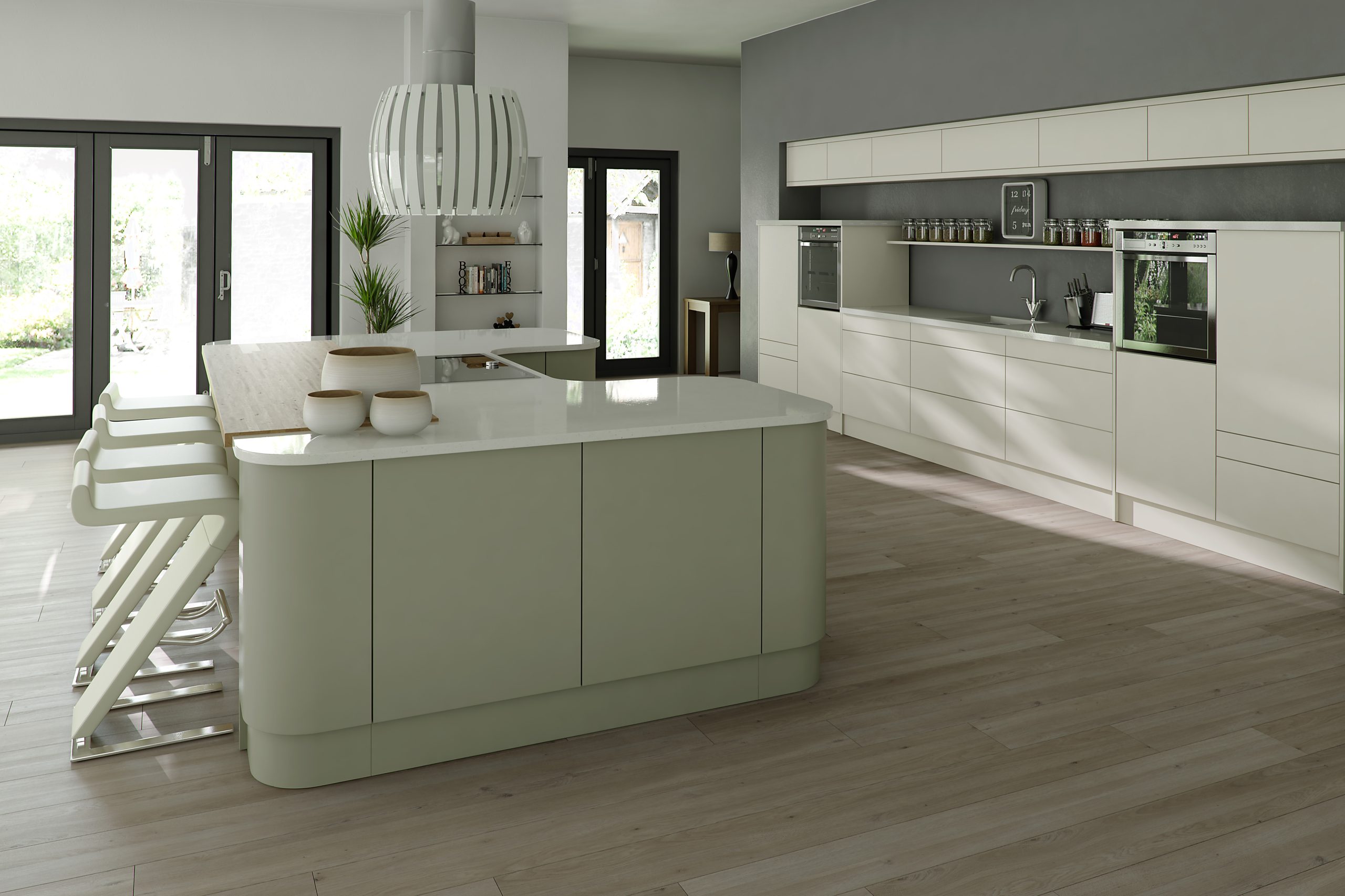 A smooth painted modern kitchen with cutting-edge design, available in 22 cool and contemporary colours.
